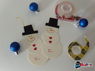 A differenza di quello che si pensi non sono necessari materiali particolari per decorare un pacchetto di natale a volte sono proprio le cose che abbiamo intorno che possono rendere prezioso un dono, perché sono gli elementi che ci rappresentano di più e che ci rendono uniche come creative. Io per esempio nel confezionamento del pacchetto di oggi, come vi ho detto in precedenza, ho utilizzato una scatola di scarpe, dello Scotch magic per realizzare un alberello stilizzato. Ho completato il tutto con un simpatico pupazzo di neve di cartoncino, mi sono ispirata all'idea di LeeAnn Greff per ottenerne uno semplice ma che desse carattere al mio pacchetto.